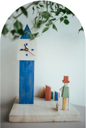 Orologio da tavolo realizzato in legno massello. E' decorato interamente a mano con terre naturali. Il disegno nasce dalla stilizzazione della città di Londra. E' un orologio che grazie alla sue essenzialità nella forma, riesce ad adattarsi a qualsiasi arredo della casa.